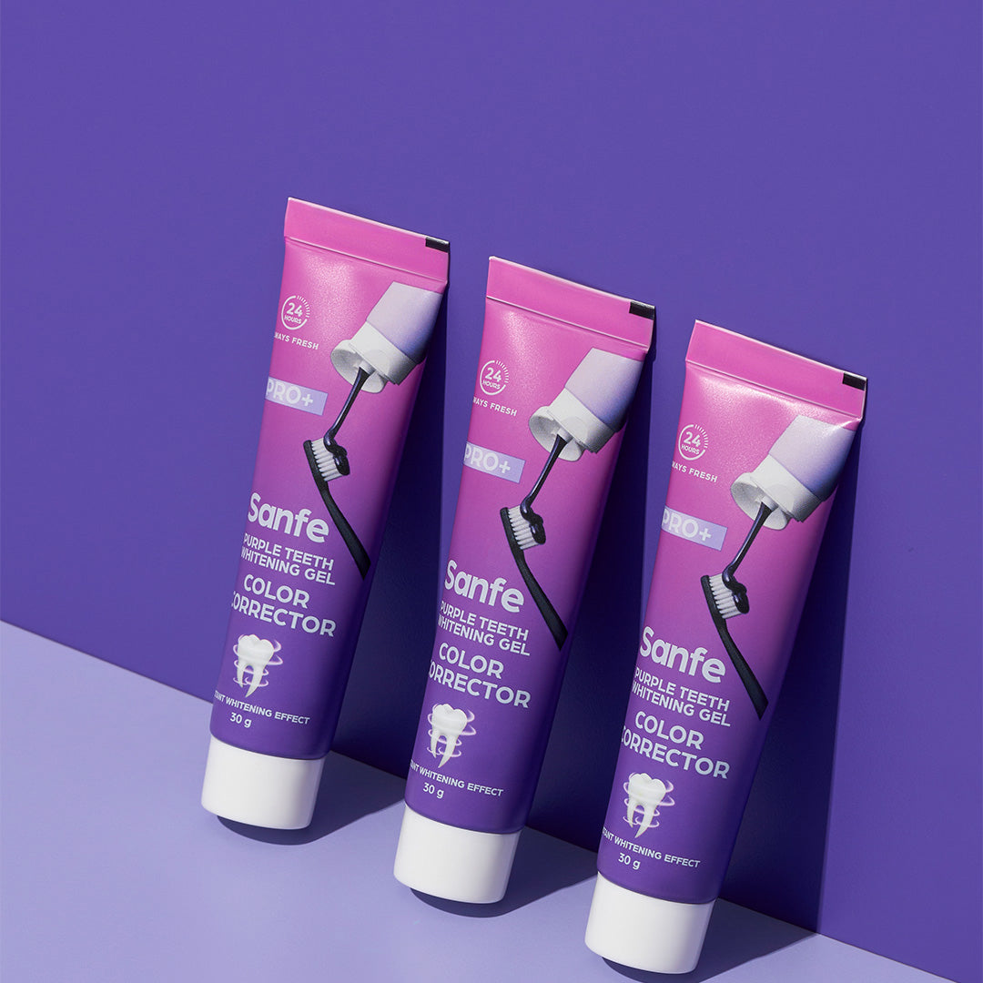 • Apply Purple Whitening Gel evenly on teeth and let it sit for 1–2 minutes.