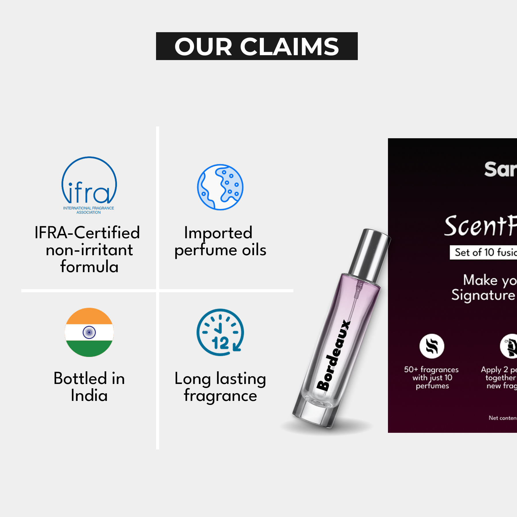 ScentFusion fragrance kit is a set of 10 iconic blending perfumes that you can use to create more than 50 unique fragrances. Whether you are going to the office or to a party, ScentFusion is your instant solution to become the centre of attention. The fragrances are 100% safe for all skin types and are long-lasting.