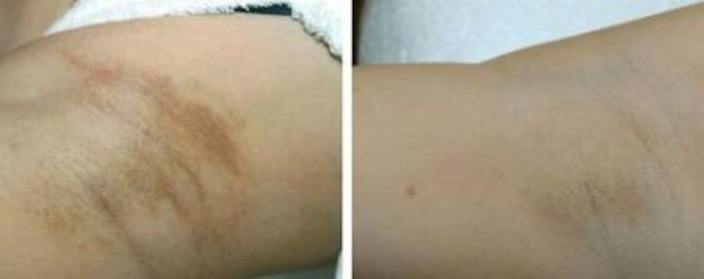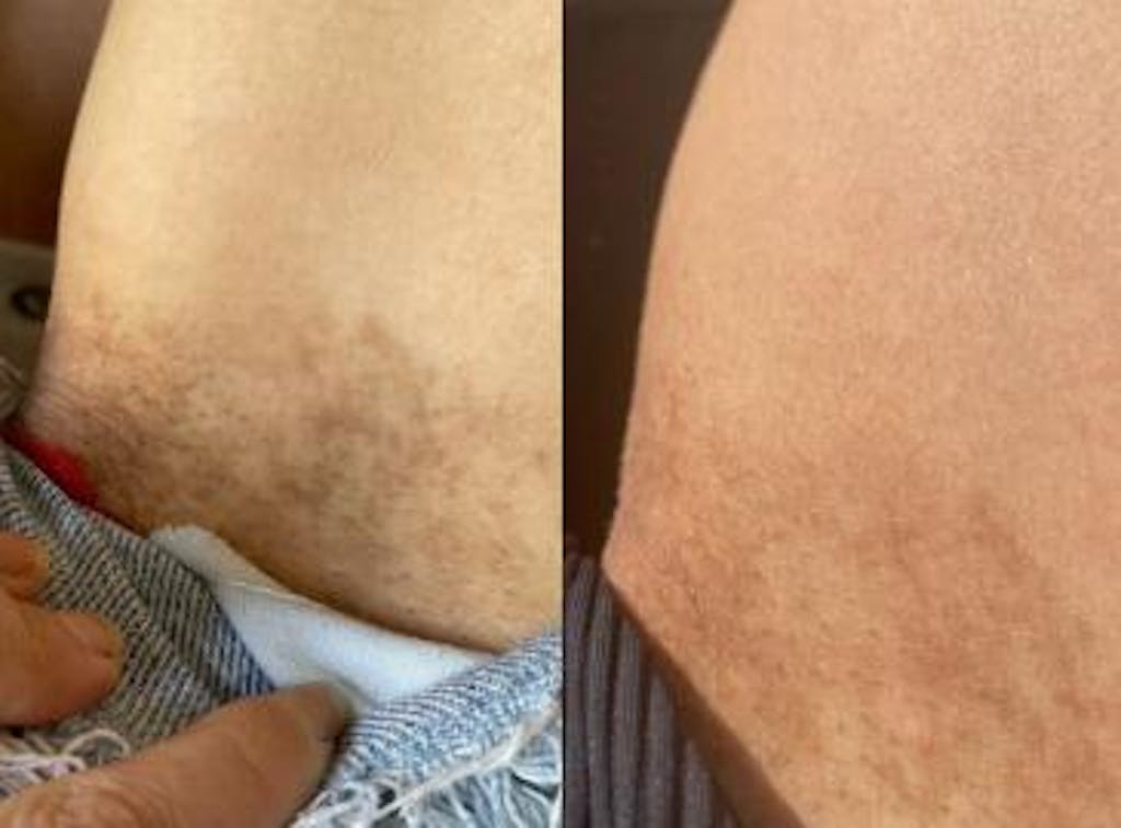 With regular use (twice daily), visible lightening appears in 2–3 weeks. Continued use is needed to maintain even skin tone, especially on areas exposed to friction or sun.
