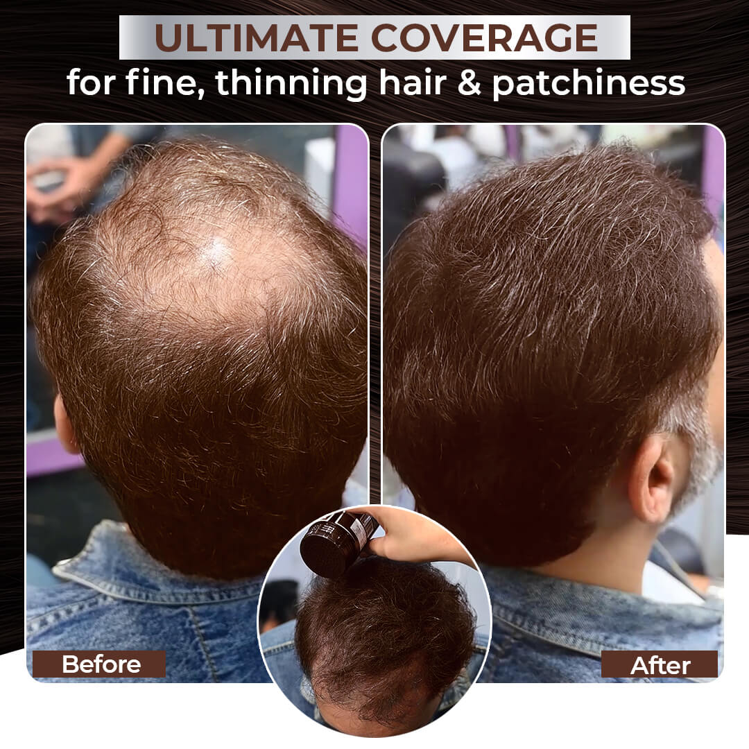Match the fiber shade to your root color. The black variant suits natural black or deep brown Indian hair.