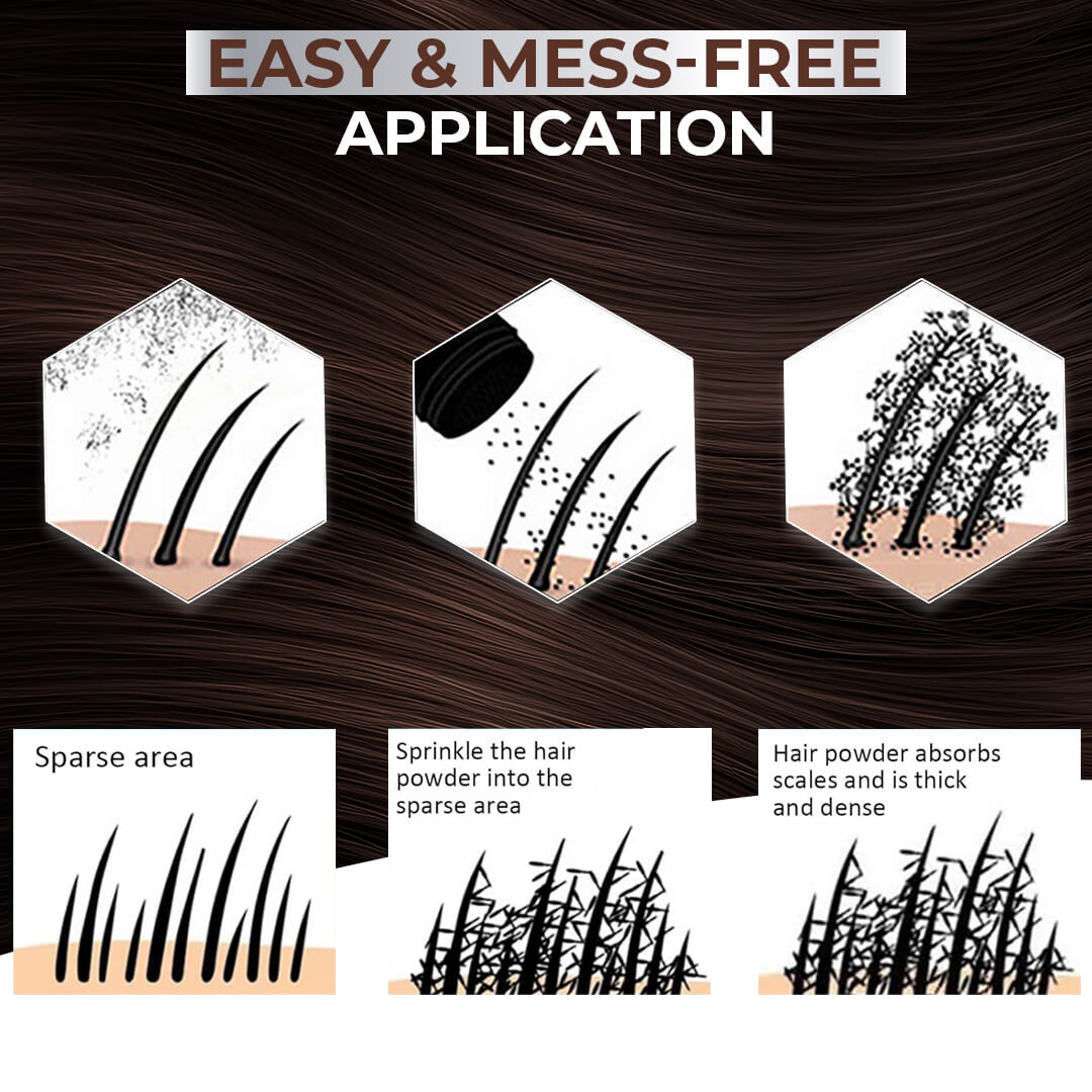 The keratin-based microfibers cling to existing strands using static charge, filling gaps and creating the illusion of fuller hair.