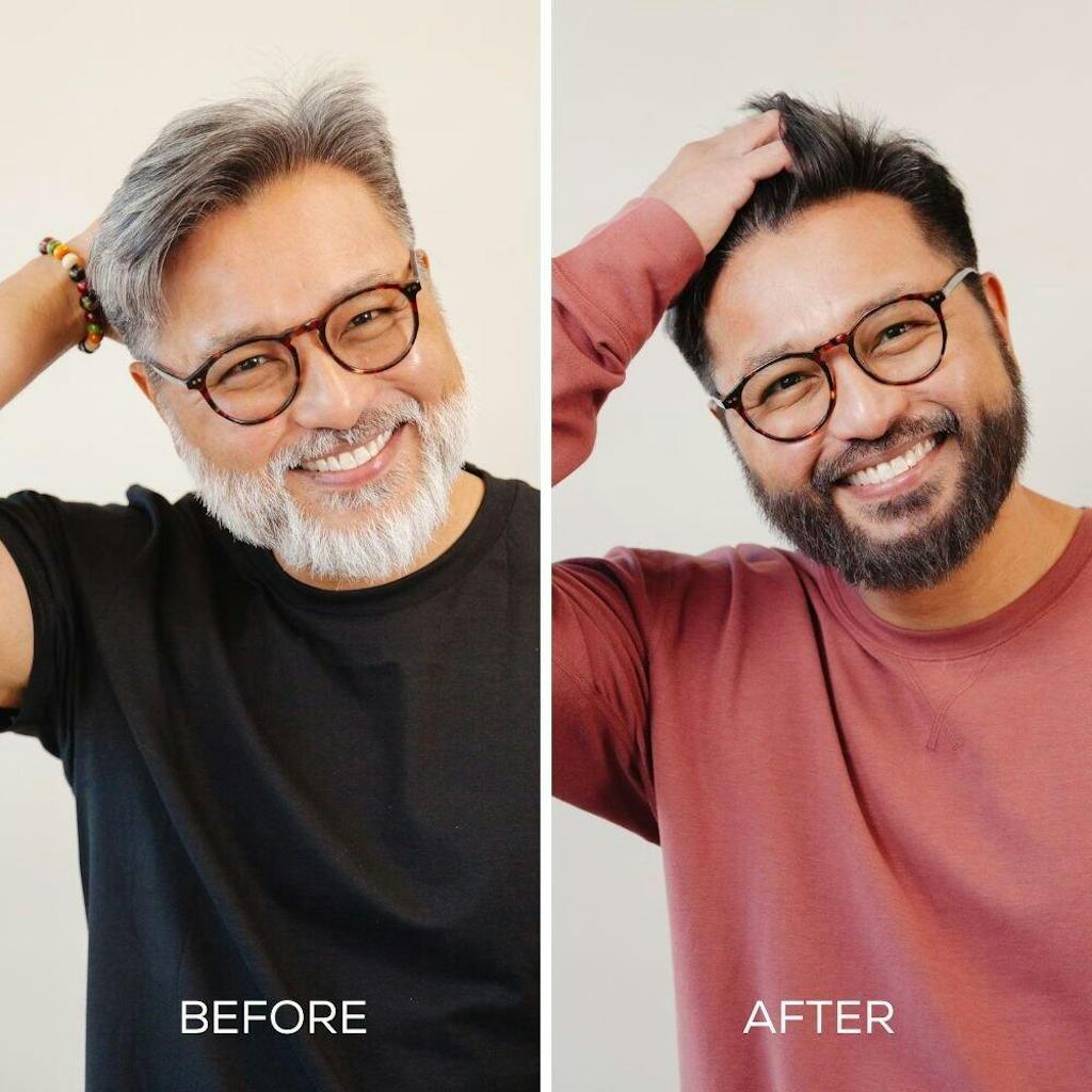 • Dab gently on grey strands, thinning areas, or uneven sections of the hairline.