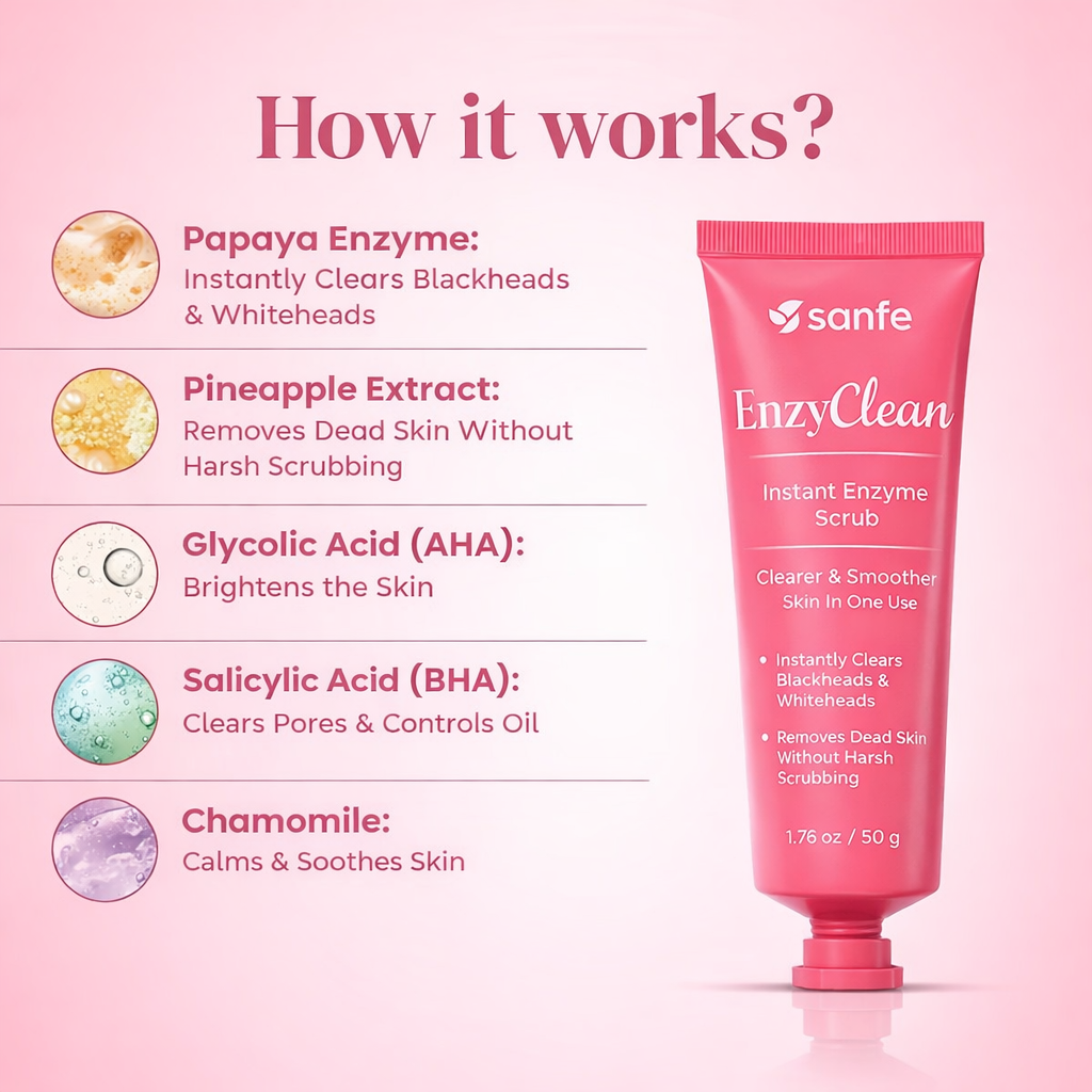 Enzyme scrubs dissolve dead skin and pore buildup chemically, making them gentler and more effective than harsh physical scrubs.