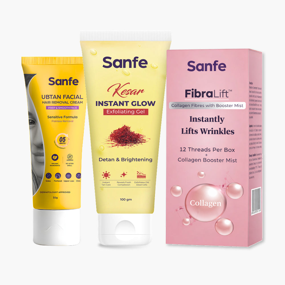 Sanfe Complete Facial Care Combo – Hair Removal, Instant Lift & Glow Exfoliation