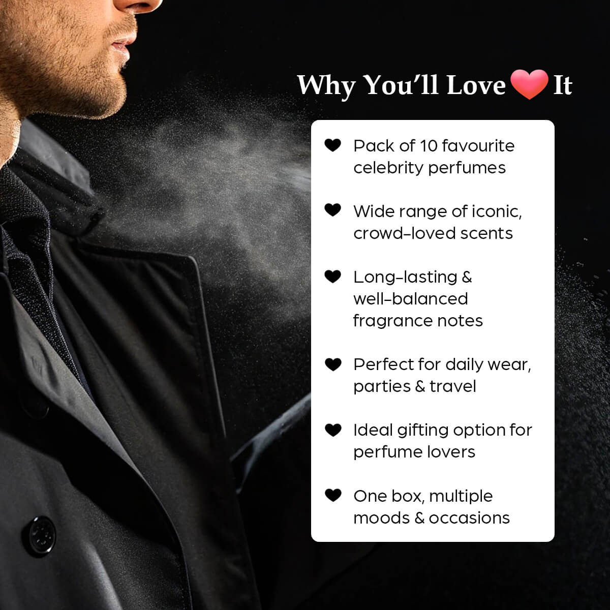 Designed for those who enjoy switching fragrances with their mood or occasion, ICONIC 10 offers a complete scent wardrobe in one elegant set. Whether it’s for everyday wear, office use, special occasions, travel, or gifting, this unisex perfume collection delivers versatility without compromise.