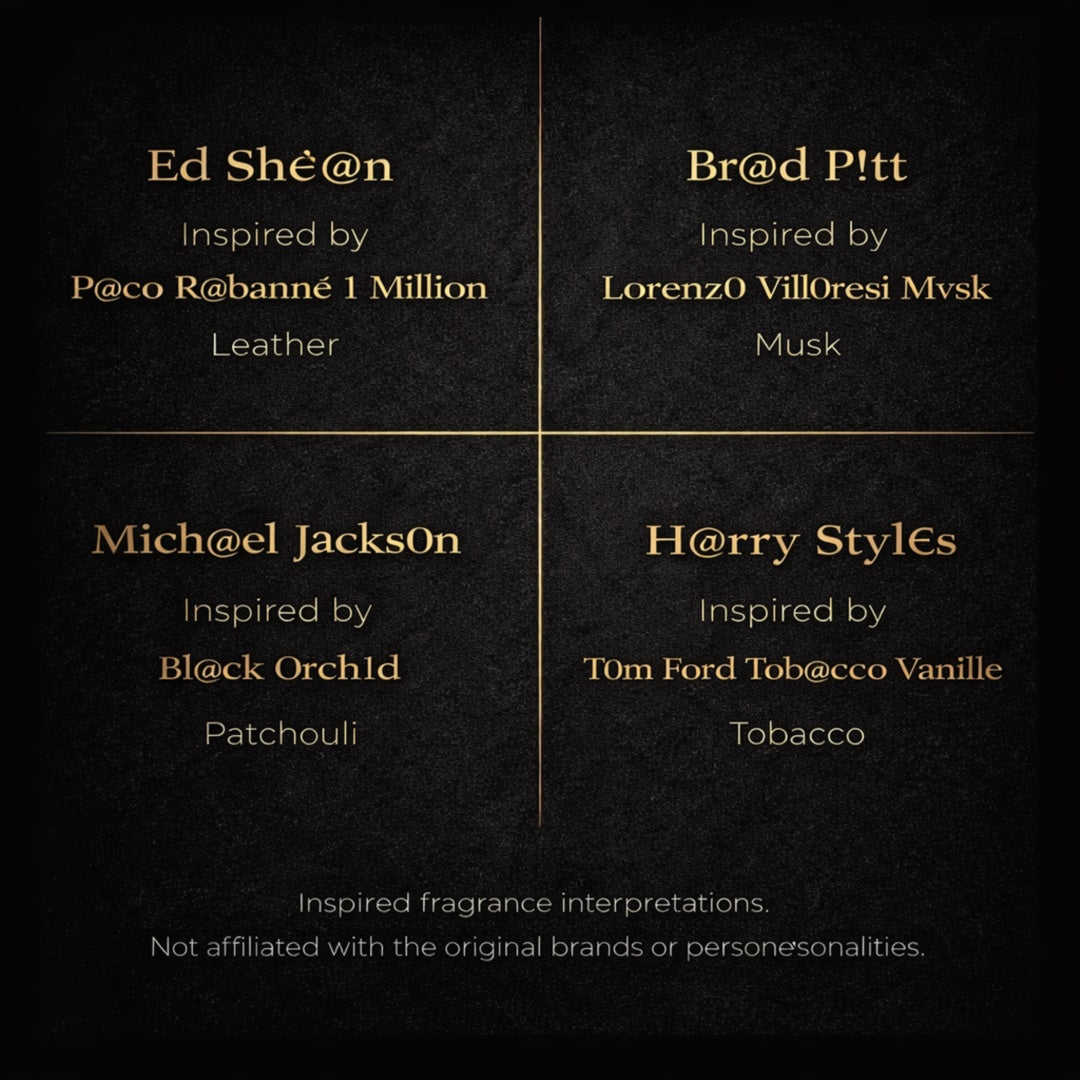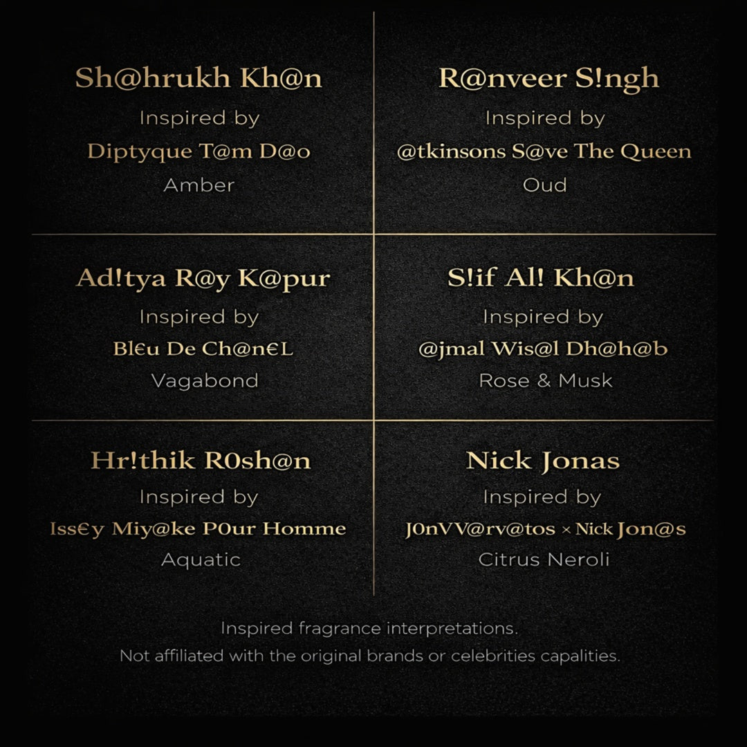 ICONIC 10 by Sanfe is a curated set of 10 signature perfumes inspired by celebrity-loved fragrance styles from around the world. Each scent captures a unique mood and personality, ranging from warm ambers, rich ouds, and deep musks to fresh aquatics, refined florals, and vibrant citrus blends.