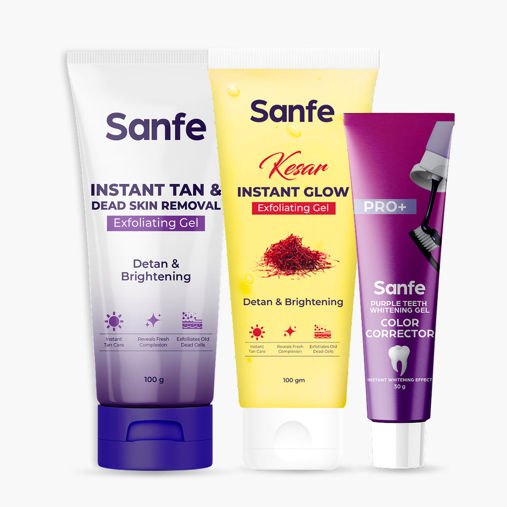 Sanfe Ultimate Skin & Smile Kit – Exfoliating Gels + Teeth Whitening Gel | Brighten Skin & Whiten Teeth Effortlessly